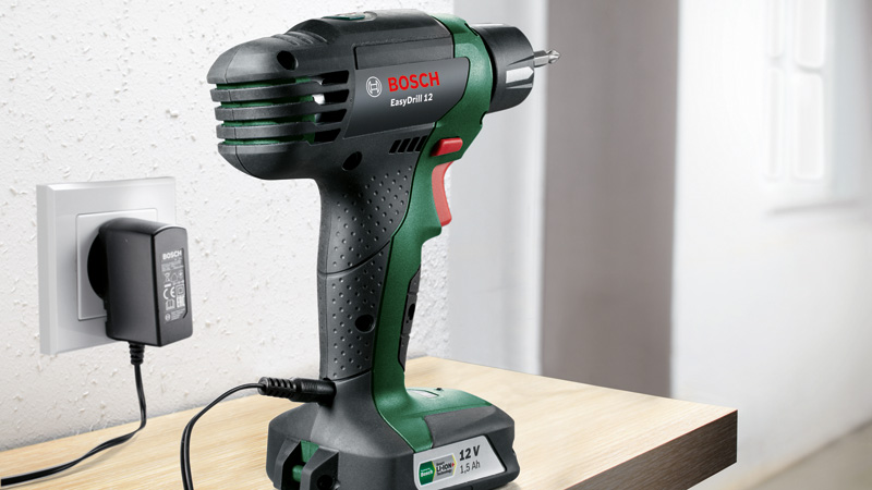 Akku-Bohrschrauber EasyDrill 12. Der handlichste und benutzerfreundlichste Akku-Bohrschrauber seiner Kategorie. Ergonomisches Design und geringes Gewicht. Intuitiv und bedienerfreundlich. Maximaler Komfort. Softcase für einfachen Transport und Aufbewahrung. Bis zu 150 Schrauben mit einer Akkuladung. Geeignet für das Bohren bis maximal 6 mm Durchmesser in Weichholz. Schrauberbit. Aufbewahrungshülle. Karton